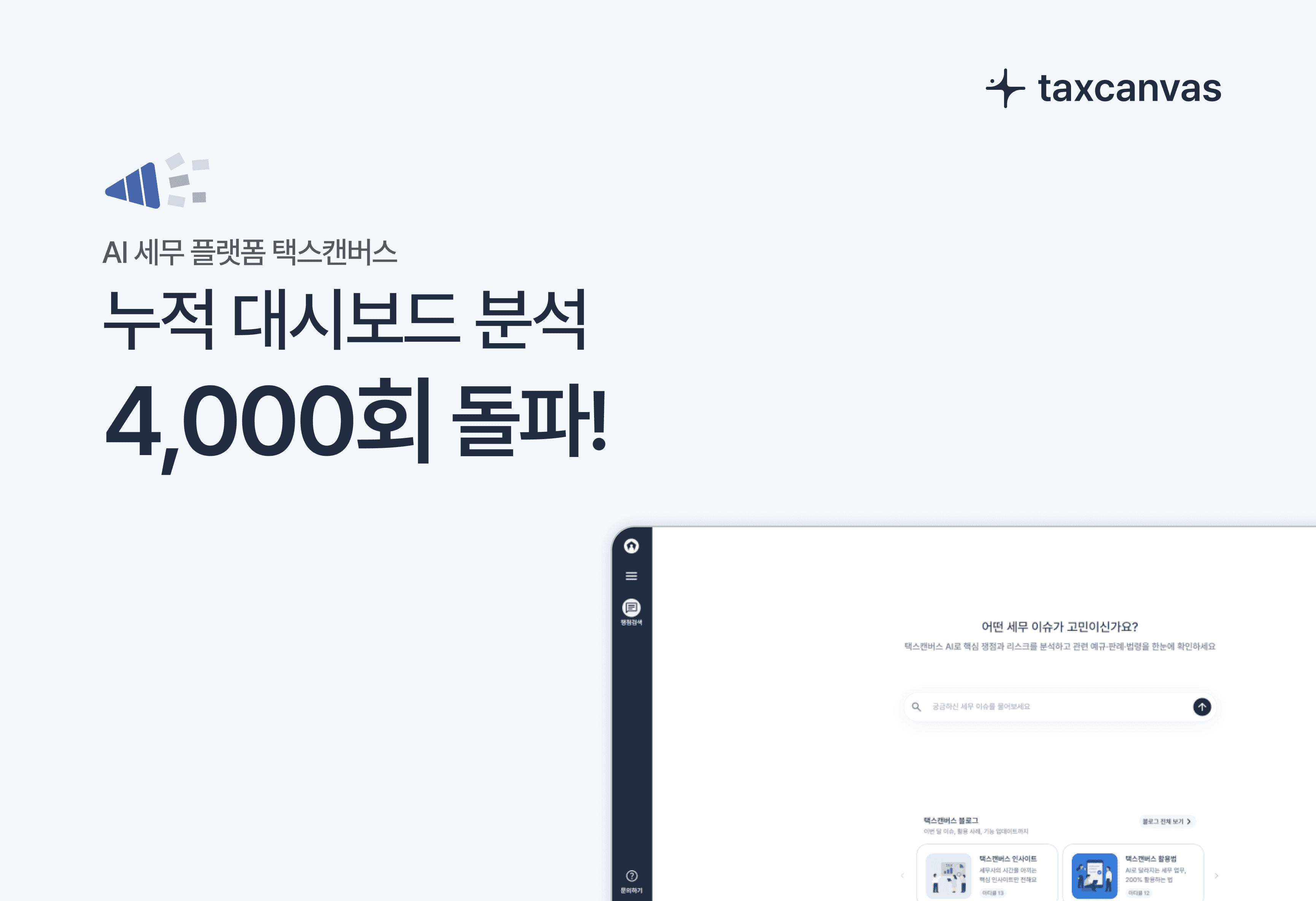 AI 세무 플랫폼 택스캔버스, 누적 대시보드 분석 4,000회 돌파! 3,000회에서 4,000회까지, ‘진짜 실무에서 쓰이고 있다’는 증거